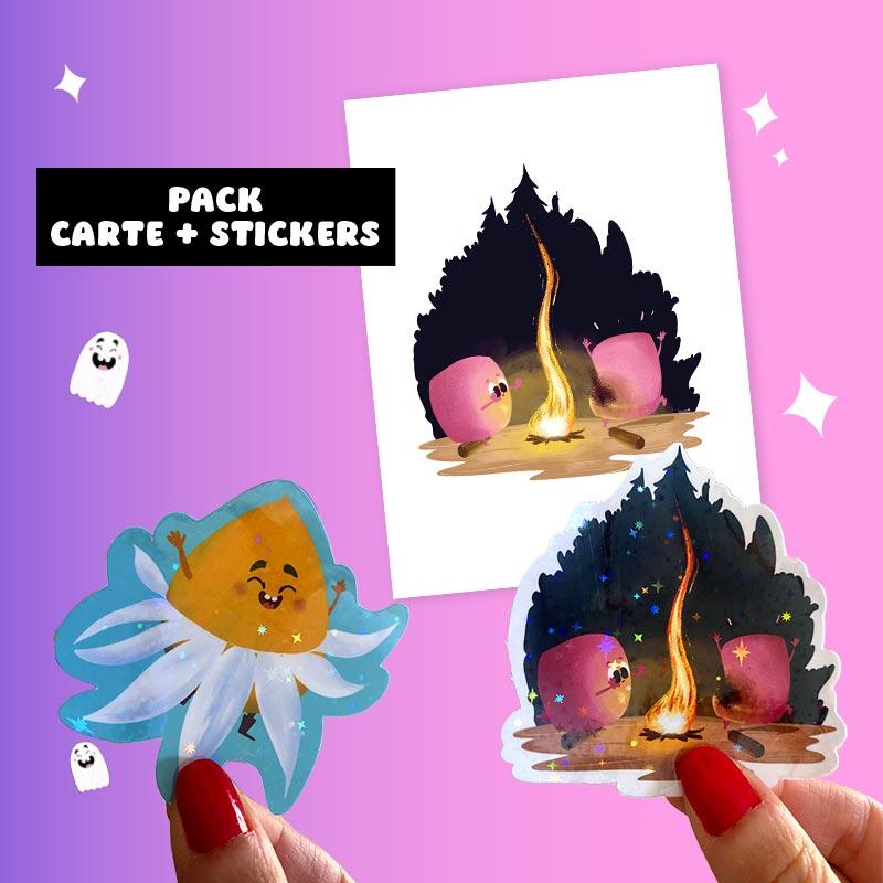 Pack “Chamallow on Fire” – Carte premium + 2 stickers holographiques
